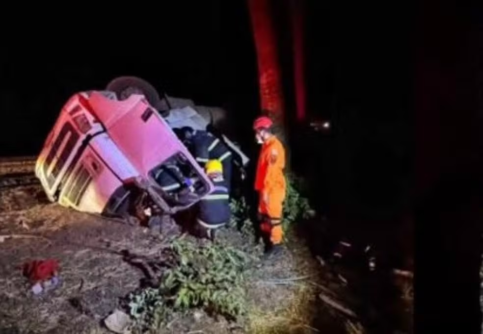 Foto: Divulgação/BombeirosUm caminhoneiro morreu após o veículo tombar na BR-153, no trecho entre Barrolândia e…