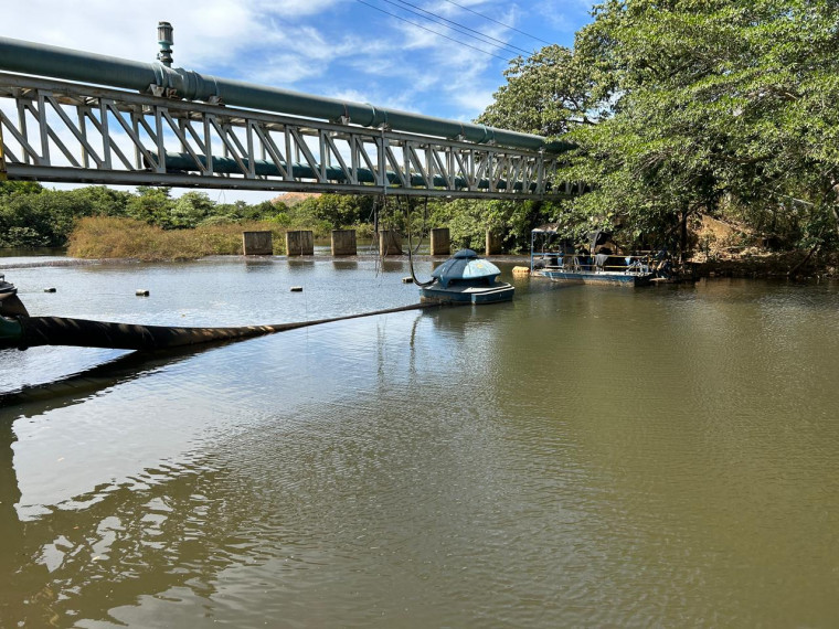 Foto: DivulgaçãoA BRK, concessionária de saneamento, está realizando dragagem no Ribeirão Taquaruçu Grande para combater…