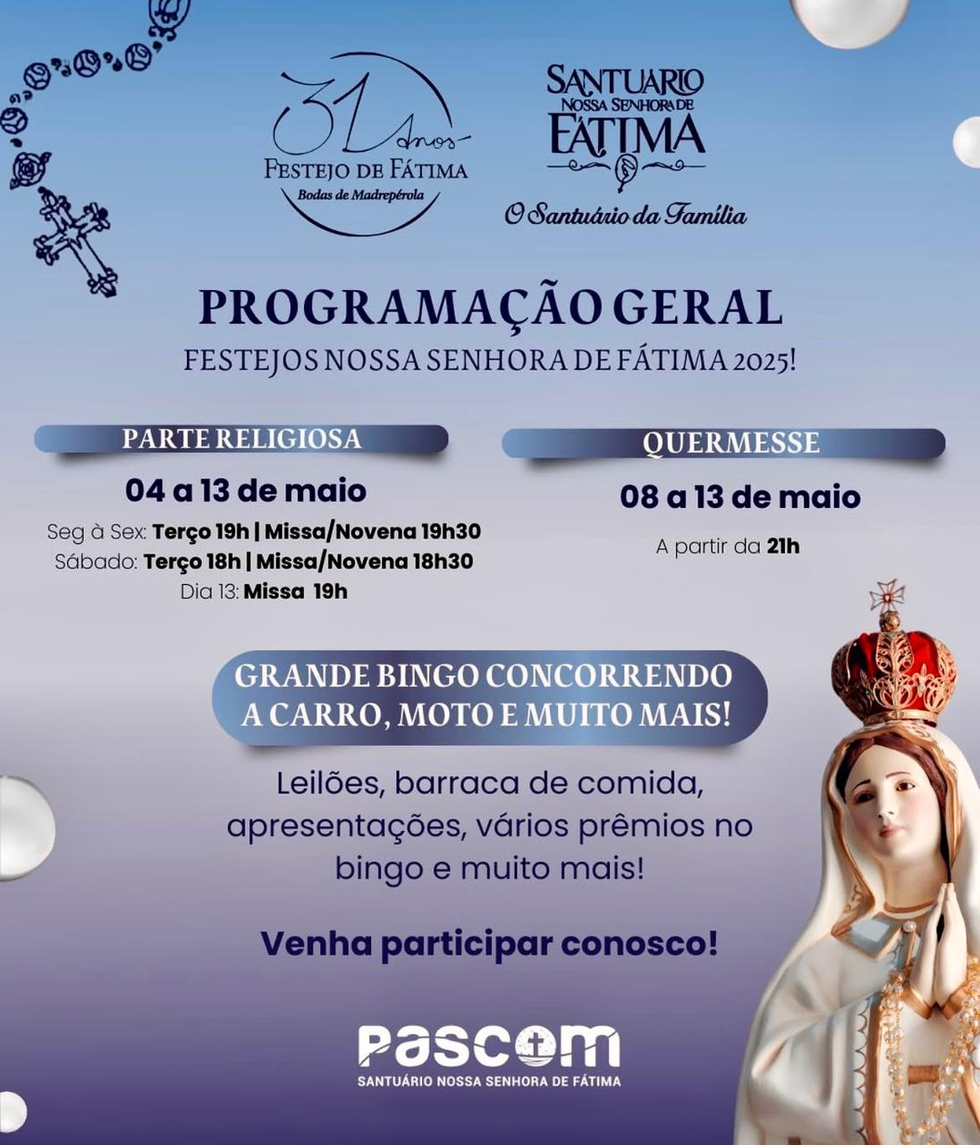 Foto: Divulgação A 31ª edição dos Festejos de Nossa Senhora de Fátima se encerra nesta…