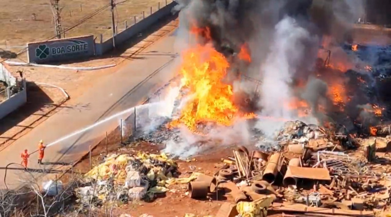 Bombeiros combatem incêndio criminoso em depósito na região central de Palmas